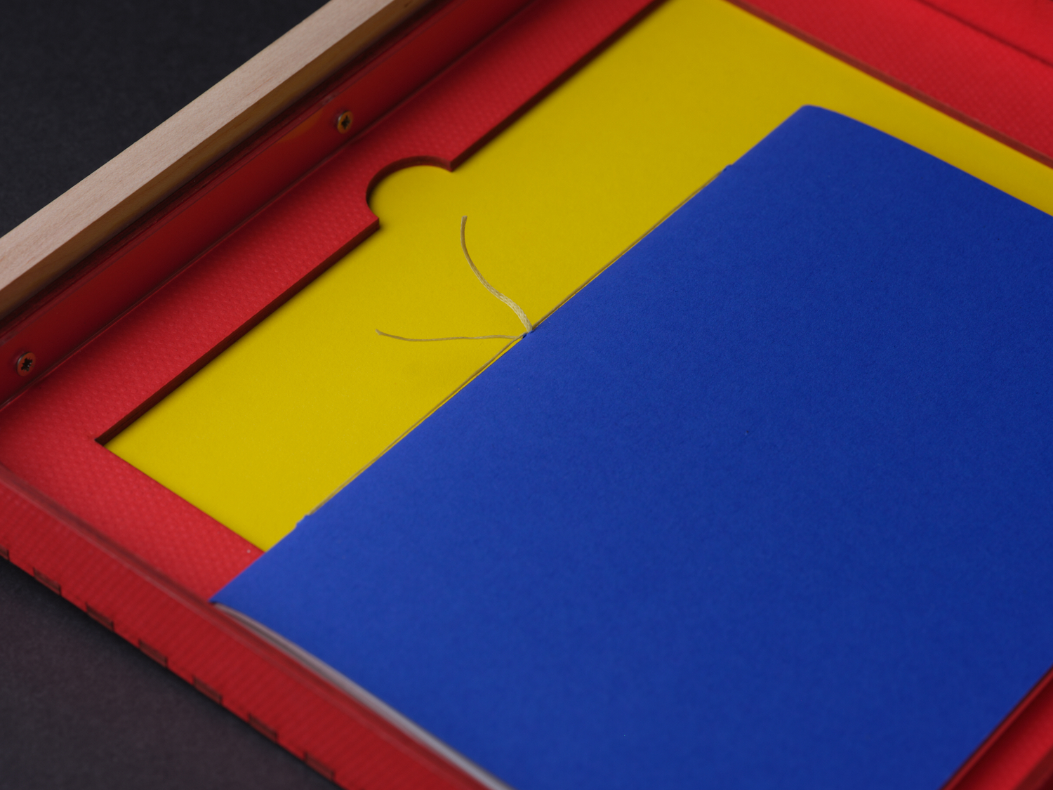 GFSmith Bright Red 1400gsm with Matrix and Granular emboss, Factory Yellow inlay.