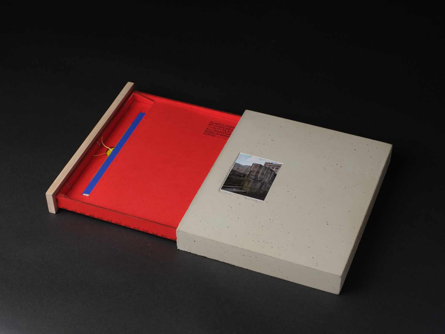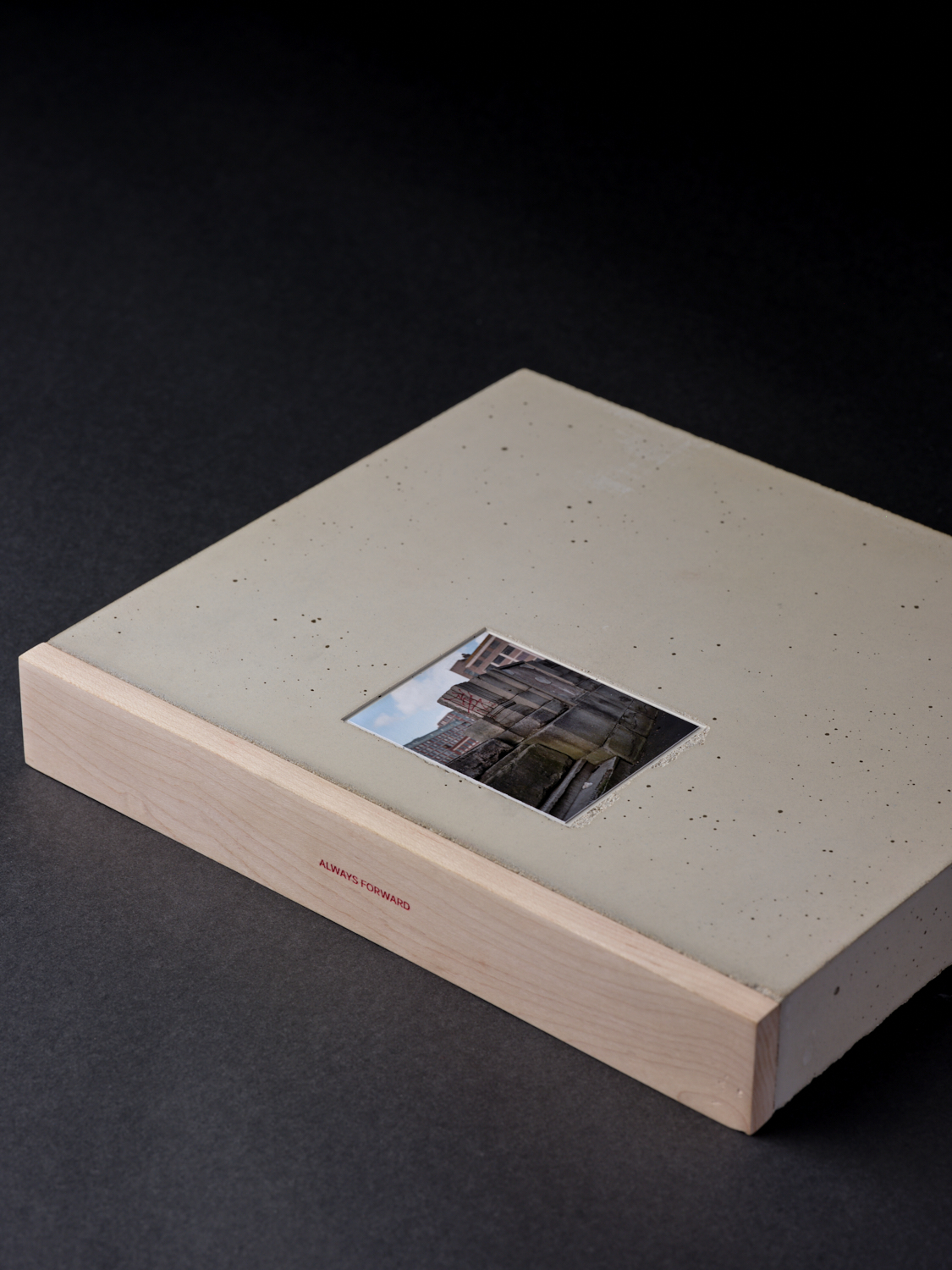 Portland Stone Jesmonite case with tipped in print and perspex inner slip